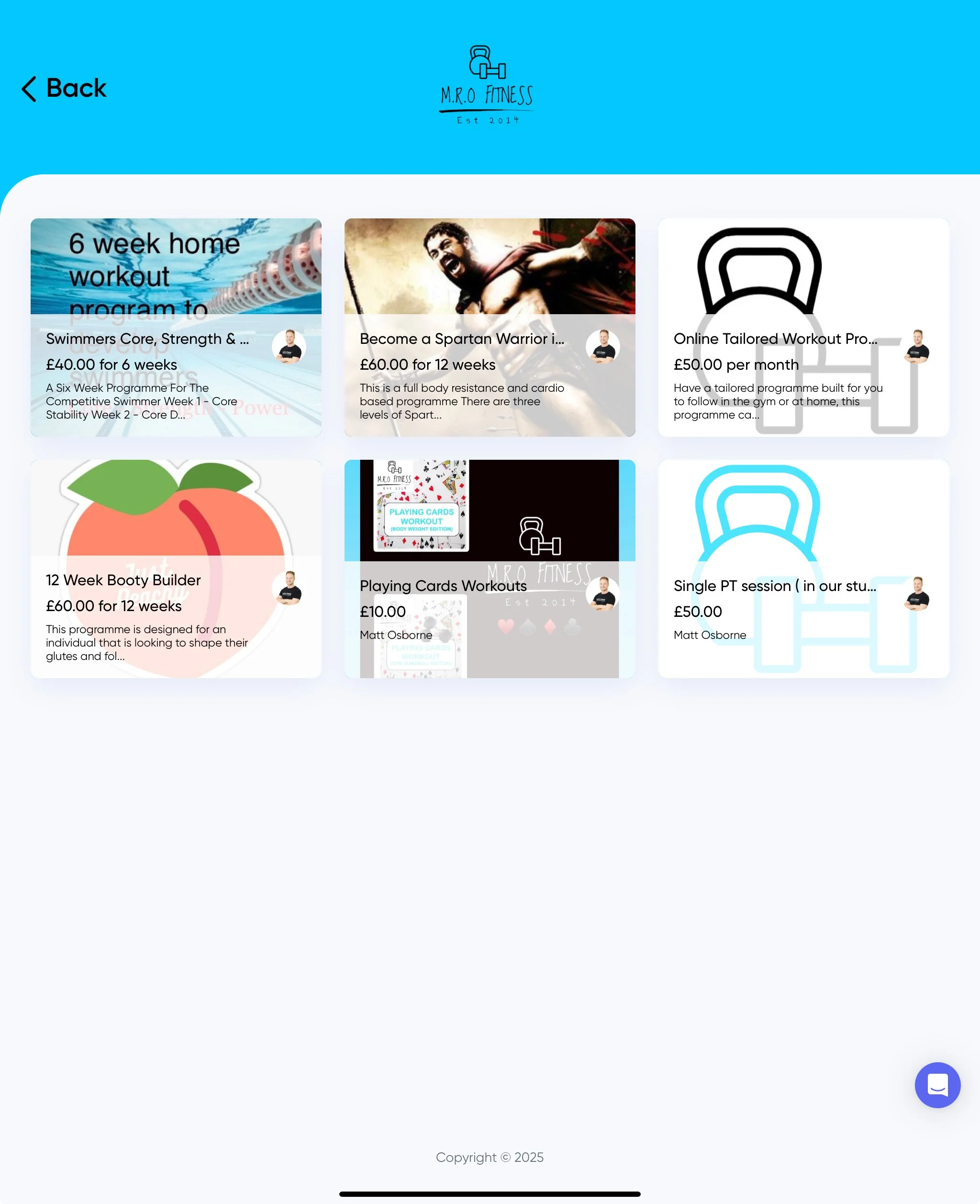 Pre Built/Generic Workouts & Packages - One-Off Payment